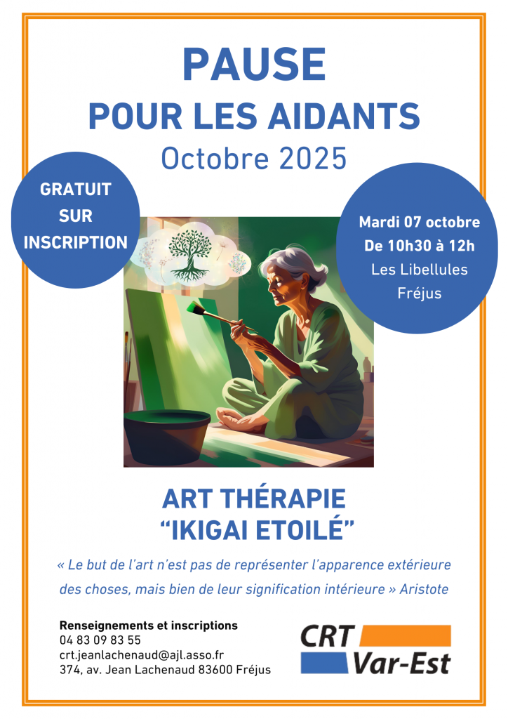 Mardi 07 octobre 2025 de 10h30 à 12h : Pause Aidants / Art-thérapie – « Ikigai étoilé ». 𝟲 𝗽𝗮𝗿𝘁𝗶𝗰𝗶𝗽𝗮𝗻𝘁𝘀 𝗺𝗮𝘅𝗶𝗺𝘂𝗺.