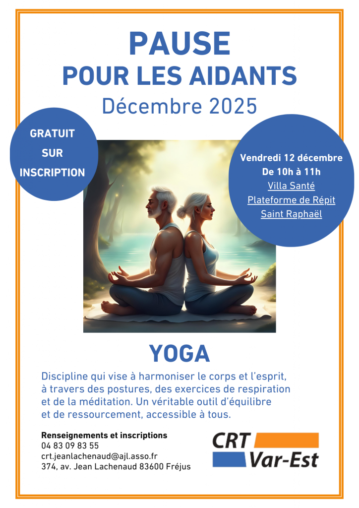 ➕ Depuis le mois dernier, le CRT est également porteur de l’atelier de Yoga se déroulant à la Plateforme De Répit de St Raphaël.