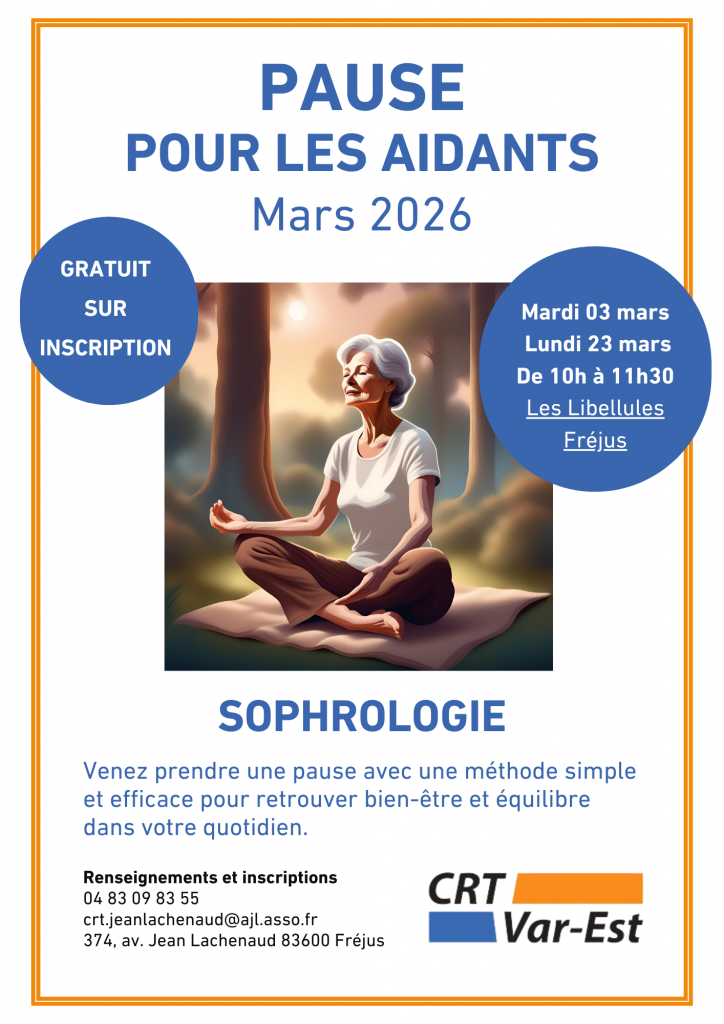 🧘♀️ Mardi 03 mars 2026 & Lundi 23 mars 2026 de 10h à 11h30 : Pause Aidants / Sophrologie (méthode simple et efficace pour retrouver bien-être et équilibre dans votre quotidien).