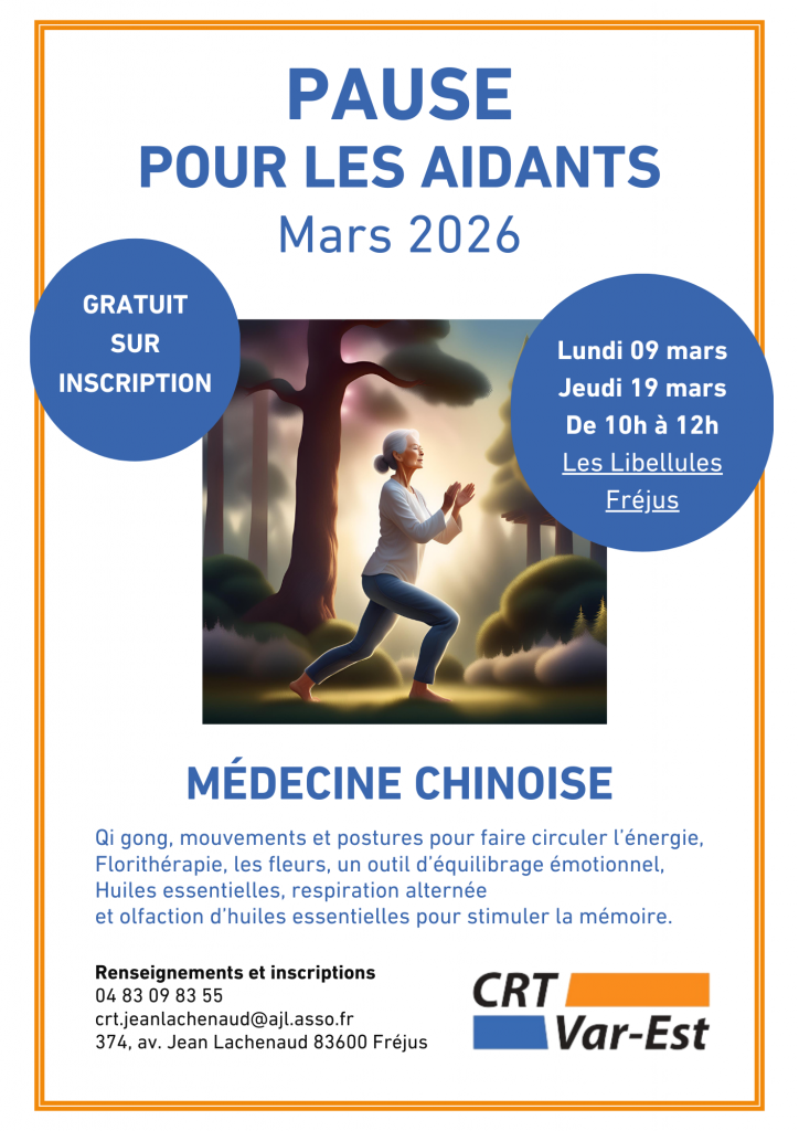 🐉 Lundi 09 mars 2026 & Jeudi 19 mars 2026 de 10h à 12h : Pause Aidants / Médecine chinoise (Qi gong, florithérapie, huiles essentielles). 𝟲 𝗽𝗮𝗿𝘁𝗶𝗰𝗶𝗽𝗮𝗻𝘁𝘀 𝗺𝗮𝘅𝗶𝗺𝘂𝗺.