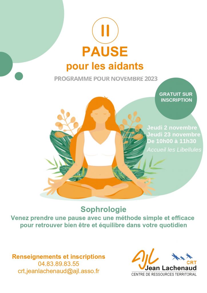 🧘♀️ Lundi 08 décembre 2025 de 14h30 à 16h & Mardi 16 décembre 2025 de 10h à 11h30 : Pause Aidants / Sophrologie (méthode simple et efficace pour retrouver bien-être et équilibre dans votre quotidien).