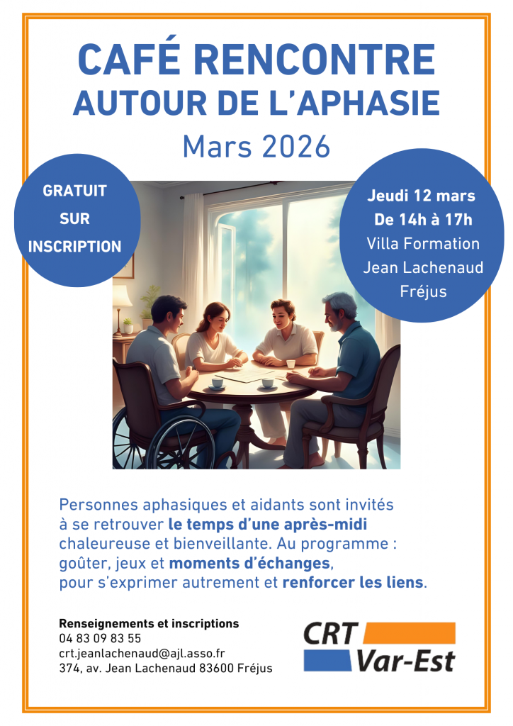 L’antenne des aphasiques du Var-Est portée par le CRT Jean Lachenaud propose 1 fois par mois des cafés / rencontres.