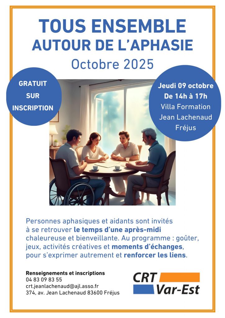 L’antenne des aphasiques du Var-Est portée par le CRT Jean Lachenaud propose désormais des cafés / rencontres tous les 2e jeudis du mois.