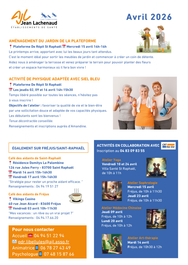 💡 Cette chronique mensuelle recense et diffuse au plus grand nombre – professionnels et grand public – les activités destinées aux personnes aidantes de proches malades sur notre territoire Var Estérel.