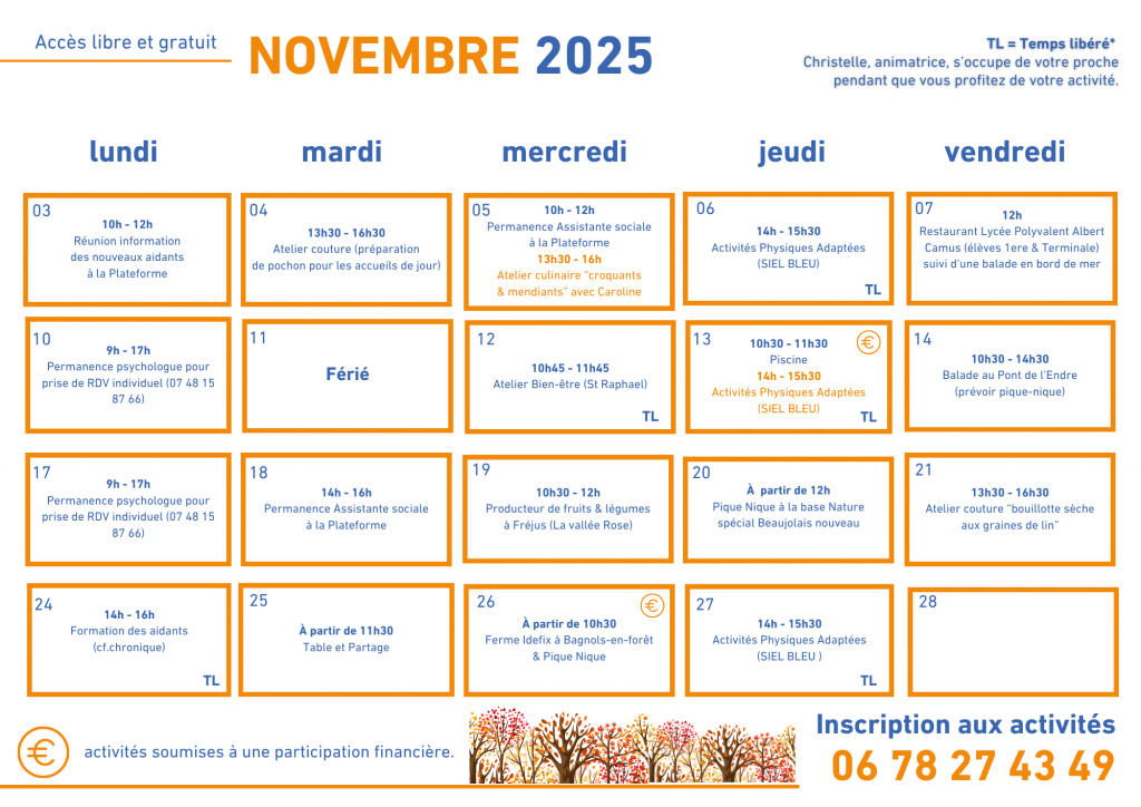 Si vous êtes intéressé(e) par une ou plusieurs activité(s), seul(e) ou accompagné(e) de votre proche, merci de vous inscrire :