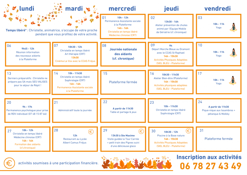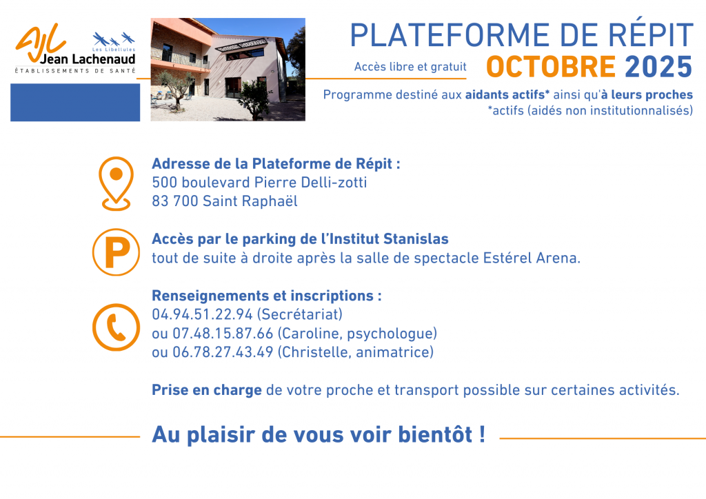 La Plateforme de Répit Jean Lachenaud propose chaque mois un programme d’activités destiné à 𝐭𝐨𝐮𝐬 𝐥𝐞𝐬 𝐚𝐢𝐝𝐚𝐧𝐭𝐬 𝐚𝐜𝐭𝐢𝐟𝐬 (aidés non institutionnalisés) ainsi qu’à leurs proches.